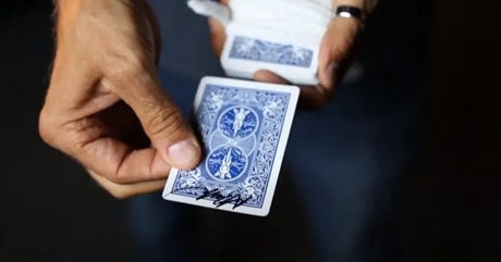 Ejemplo: la «carta ambiciosa», un mago hace que una carta elegida por el espectador suba mágicamente a la parte superior de la baraja una y otra vez, a pesar de ser colocada repetidamente en el medio. El truco juega con la expectativa de que la carta debería permanecer en su lugar original.